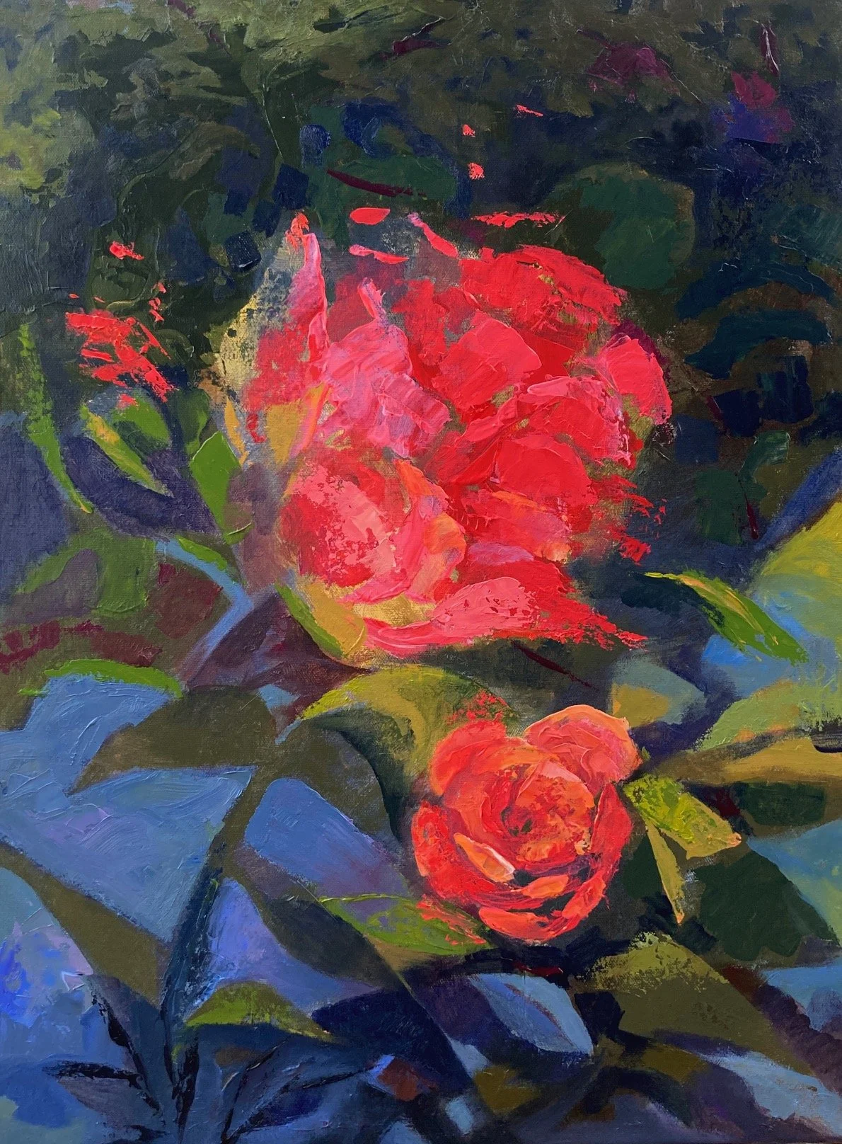 Winter Roses, 18 x 24” oil over acrylic, $1100.00