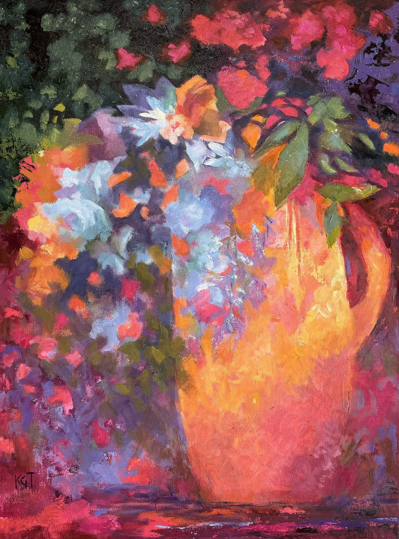 “A Chance Collection”, flowers in pitcher, 18 x 24” oil on canvas, framed, $1600.00